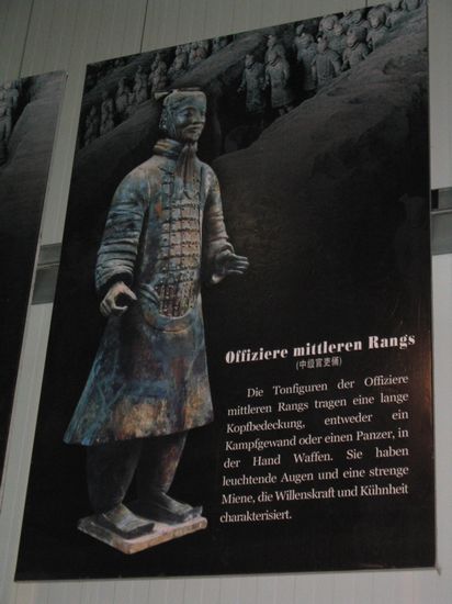 Die tonfiguren der Offiziere mittleren Rangs tragen eine lange Kopfbedeckung, entweder ein Kampfgewand oder einen Panzer, in der Hand Waffen. Sie haben leuchetende Augen une eine strenge Miene, die Willenskraft und Kühnheit charakterisiert.